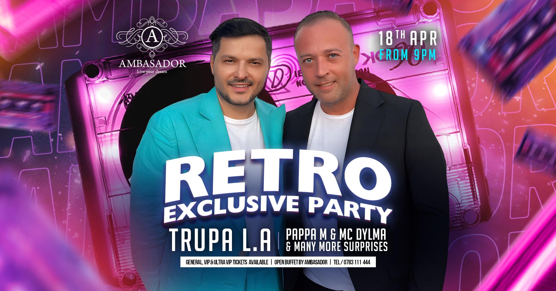 Pe 18 aprilie, Ambasador Exclusive Party dă timpul înapoi și te invită la un RETRO PARTY cum trebuie trăit: tare, cu suflet și fără pauză de la distracție!